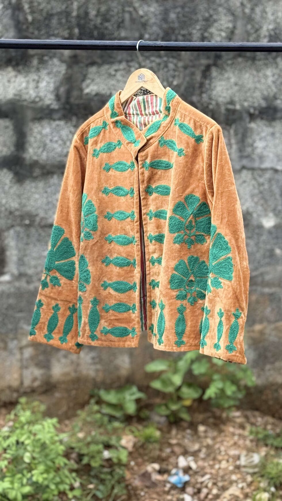 Luxurious velvet jacket featuring intricate Suzani embroidery. Perfect blend of elegance and tradition — ideal for festive and ethnic occasions.